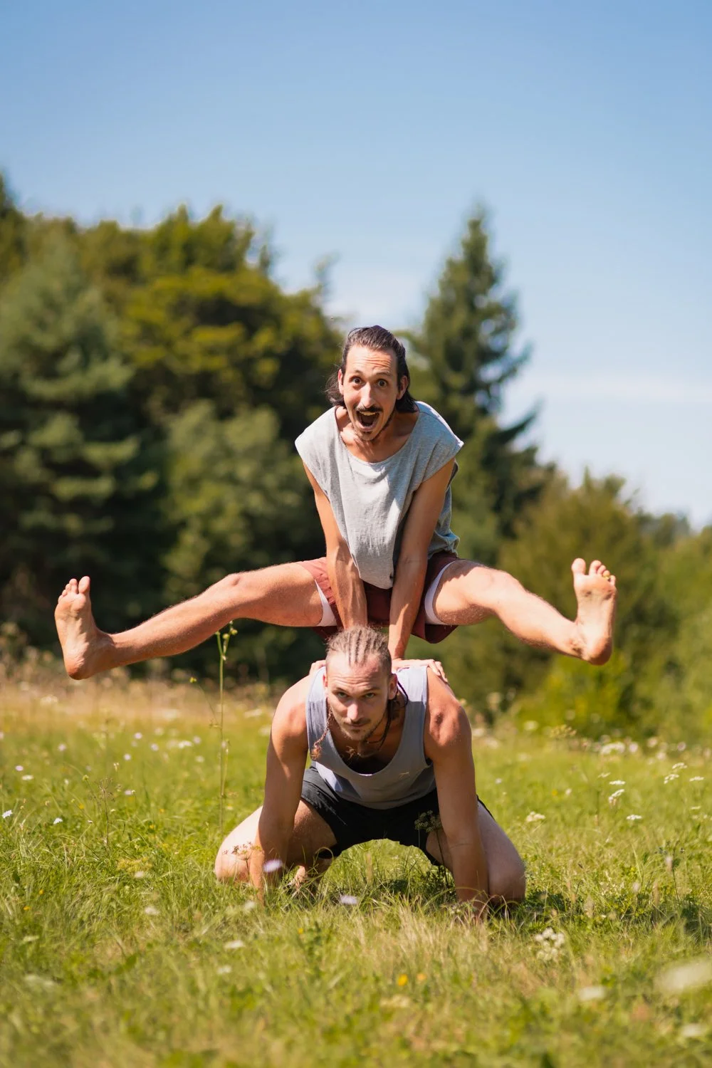 Za to delavnico združujeva svoja znanja in pristope, da ti ponudiva izkušnjo, ki združuje igrivost, moč in svobodo telesa.